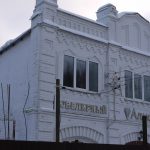 ограниченным двумя тонкими полочками. Лучковые перемычки окон выявлены кладкой. Верхний этаж с остатками килевидных обрамлений первоначальных окон завершен карнизом с зубчиками и городчатыми поясами. Крупный фигурный аттик по оси фасада повышен в центральной части, которая украшена филенками, парапеты по его сторонам обработаны узкими нишками и ограничены над углами здания высокими тумбами.